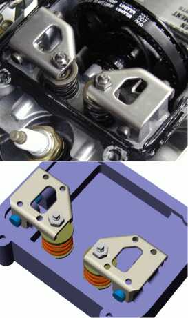 the engine photo, showing holes drilled in the valve rockers for bolting on